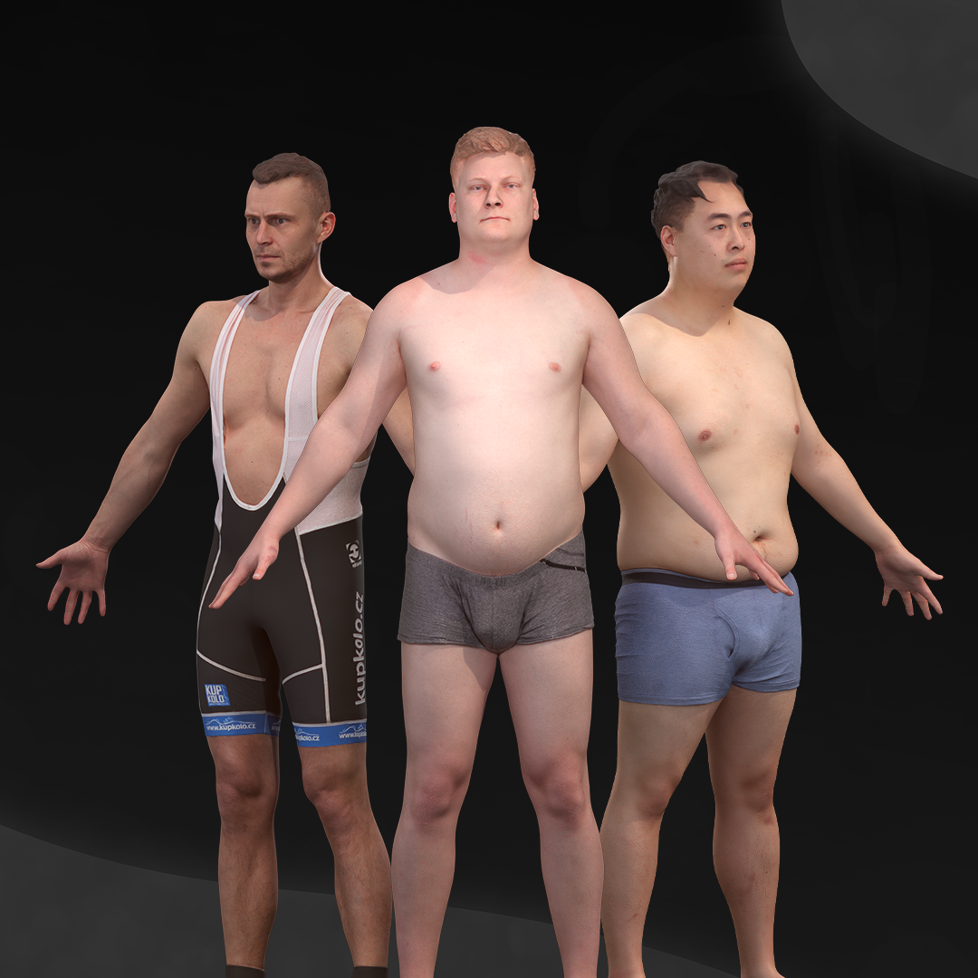 Clean A-Pose scans are the gold standard for anatomy-correct character creation. Captured in a neutral, symmetrical stance, they are ideal for sculpting, retopology, wrapping, rigging, and anatomy study.